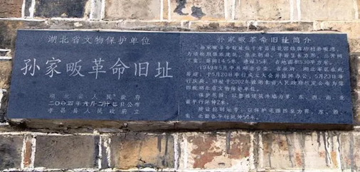实践队从孝昌县花园镇出发,首先到达位于孝昌县花园镇的孙家畈革命旧址。孙家畈革命旧址是全国为数不多保存下来的省级党委、政府、军区成立旧址,是湖北党史、政史、军事史的实物见证。“走进花园孙家畈,一排晚清时期徽派建筑风格的老旧民居映入眼帘,青灰色的墙体,浸染着历史的沧桑。” 房屋建筑坐北朝南、平面呈长方形,三开间三重民房,面阔14.5米,进深35米,占地面积530平方米。