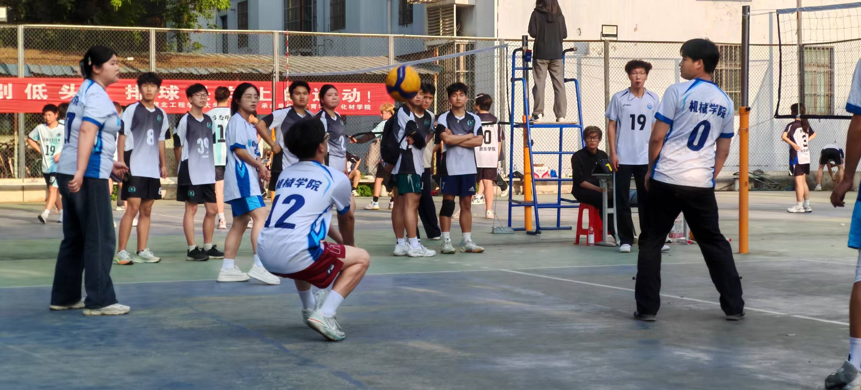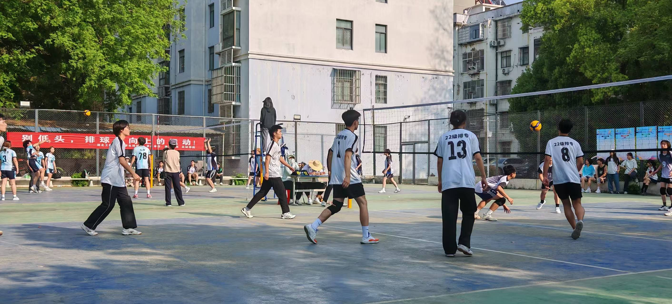与此同时,排球选拔赛也在学院排球场同步激烈进行。洁白的排球在空中划出一道道优美的弧线,发球、垫球、传球、扣球、拦网……队员们技术娴熟,配合默契。相比篮球的力量与速度,排球赛场更注重团队的精密配合与瞬间反应。场上队员高声呼应,互相鼓励,为了救起一个险球而奋力扑倒,为了组织一次有效进攻而精准跑位。赛场气氛紧张而热烈,青春的激情与拼搏的精神在一次次起落扣杀中得到完美诠释。