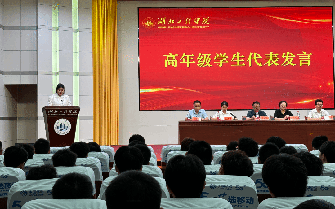2023级陈晓宇作为高年级学生代表发言,她结合自身从川西北山区到荆楚大地的求学经历,分享了“以学为本筑牢根基、以赛促学挑战创新、以干促能锤炼素养、以趣为伴丰富生活”四点体会。她用自己在学科竞赛中斩获国家级奖项、在社会实践中获评“标兵实践团队”的经历,激励新生主动探索、勇敢尝试,在大学中收获成长与进步。